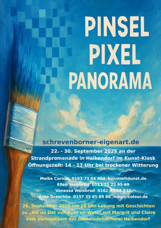 Vom 22. bis 30. September 2025 gab es im Kunst-Kiosk in Heikendorf an der Strandpromenade wieder magic-colour-Bilder zu sehen.
